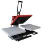 An evolutive semi automatic press format 40 x 50 cm. This press is closed manually and thanks to its electromagnetic device, it opens automatically at the end of time set. This avoids any burning of the garment. Furthermore, you can add another plate to this press with a sliding wagon and double your production at the same time.